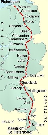 Accommodaties traject 1 (Pieterburen - Vorden)op volgorde van de dag-etappes